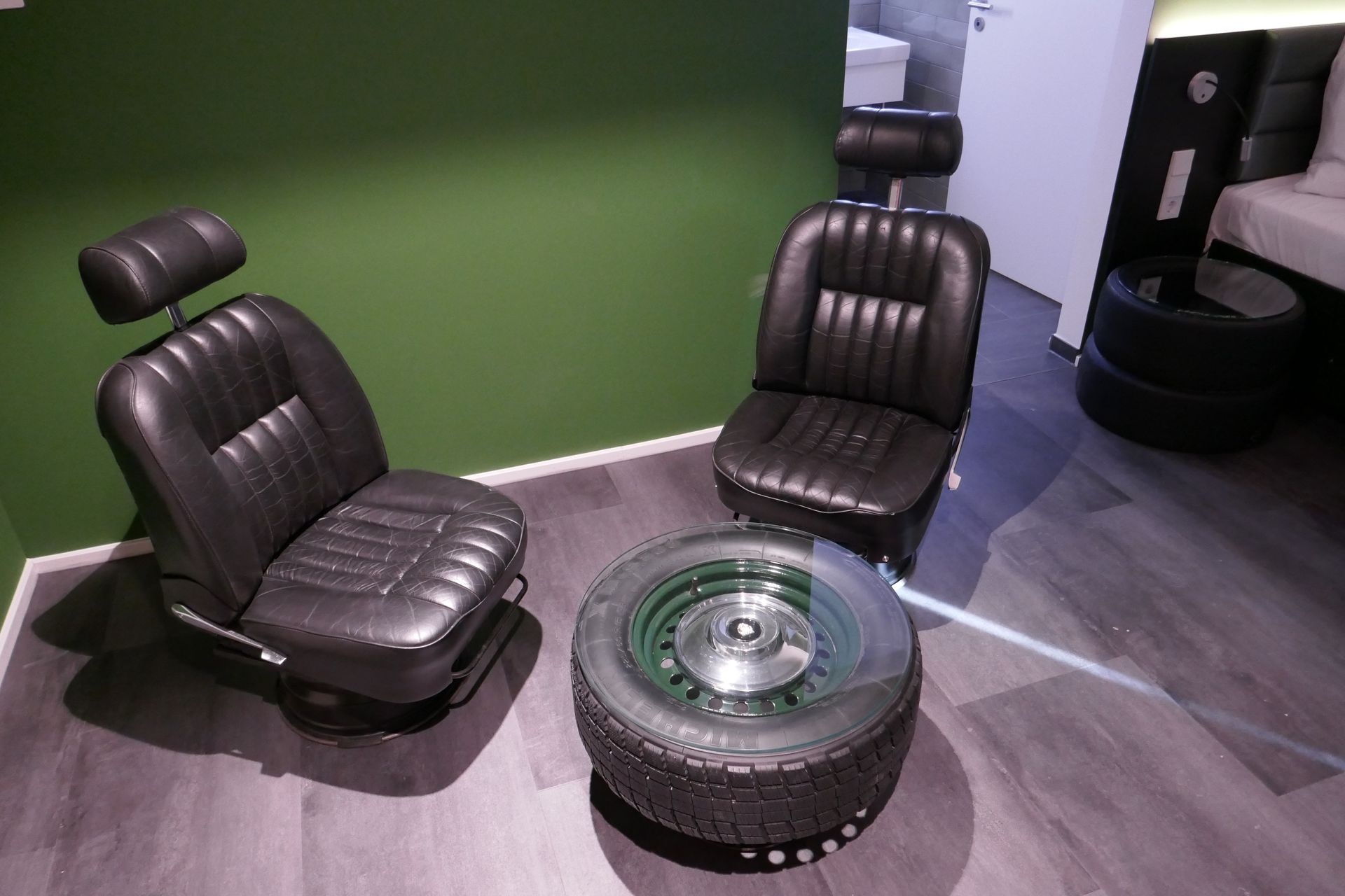 Gut erhaltene oder neu bezogene Vordersitze eines Autos sind hervorragend geeignet um als Bürostühle oder auch drehbare Sessel ein neues Leben zu erhalten.